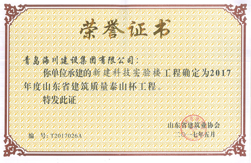 2013年11月20日開(kāi)工,2016年工程竣工驗(yàn)收并備案,自開(kāi)工伊始即確定了爭(zhēng)創(chuàng)“泰山杯”的質(zhì)量目標(biāo),“泰山杯”獎(jiǎng)是山東省建筑行業(yè)工程質(zhì)量方面的最高榮譽(yù)獎(jiǎng)?!疤┥奖豹?jiǎng)(省優(yōu)質(zhì)工程)是為貫徹執(zhí)行國(guó)家《質(zhì)量振興綱要》和《建設(shè)工程質(zhì)量管理?xiàng)l例》,泰山杯堅(jiān)持“百年大計(jì)、質(zhì)量第一”和“質(zhì)量興業(yè)”的方針,鼓勵(lì)建筑施工企業(yè)加強(qiáng)管理,搞好工程質(zhì)量,爭(zhēng)創(chuàng)一流工程,推動(dòng)山東省工程質(zhì)量水平的普遍提高,在全行業(yè)繼續(xù)開(kāi)展工程創(chuàng)優(yōu)評(píng)獎(jiǎng)活動(dòng)而建立的一個(gè)獎(jiǎng)項(xiàng),獎(jiǎng)名定為山東省建筑工程質(zhì)量“泰山杯”獎(jiǎng)(省優(yōu)質(zhì)工程),簡(jiǎn)稱“泰山杯”獎(jiǎng)。