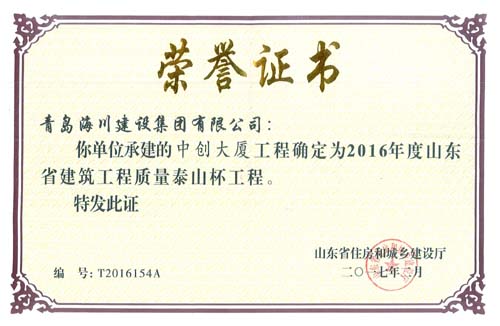 海川集團(tuán)捧回二項(xiàng)泰山杯證書